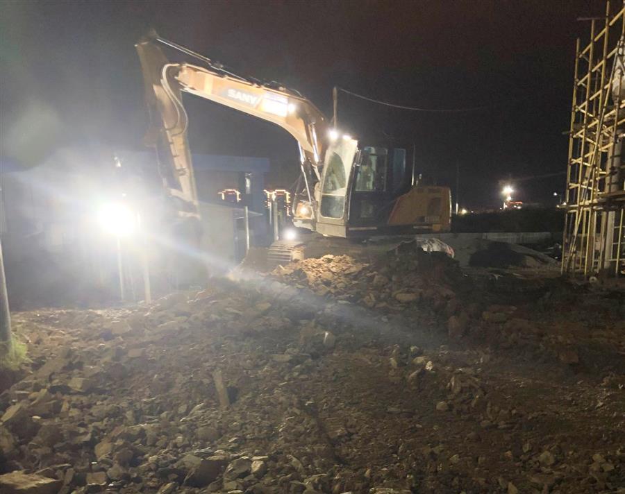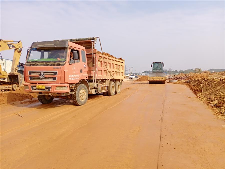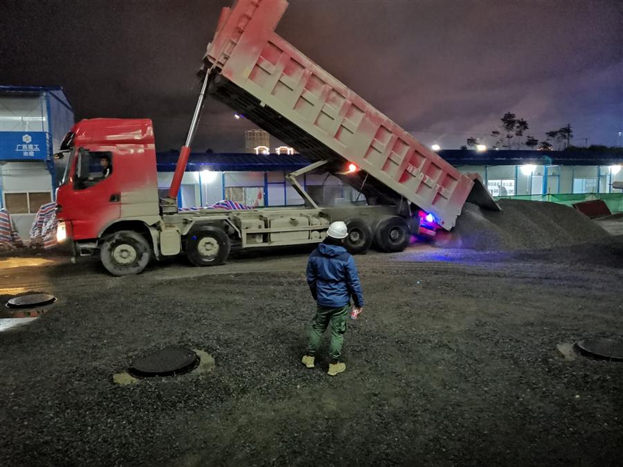 为全力冲刺四季度,项目部实行“快马加鞭、保质保量、人停机不停、昼夜料不停!”的抢工模式,在保证安全和质量的前提下,项目部全体成员抢抓施工黄金期,全力以赴推进项目建设。为加快项目建设,项目部反复讨论研究制定了科学的施工计划,合理安排人力物力。面对晚间要拉运回填土方和石料的问题,项目部采取人员轮流值班,料来人在,统一指挥的措施,做到合理配置堆放,减少二次运输,提高工作效率。