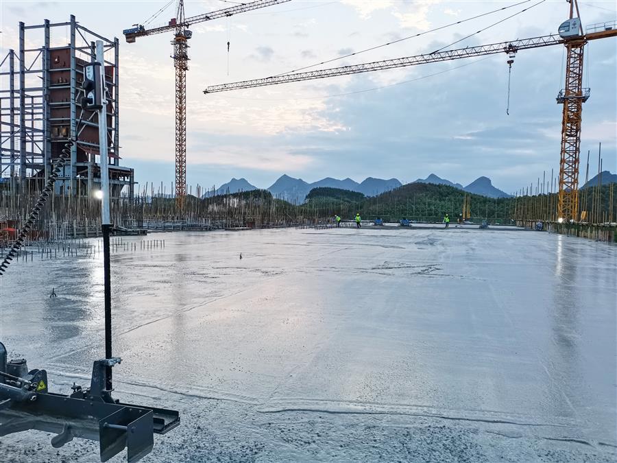 “72小时浇筑11000平方米!”4月9日凌晨,经过项目部全体人员的连续奋战桂华分公司承建的生活垃圾焚烧处理项目完成项目体量最大的8米层卸料大厅楼板地面浇筑作业。