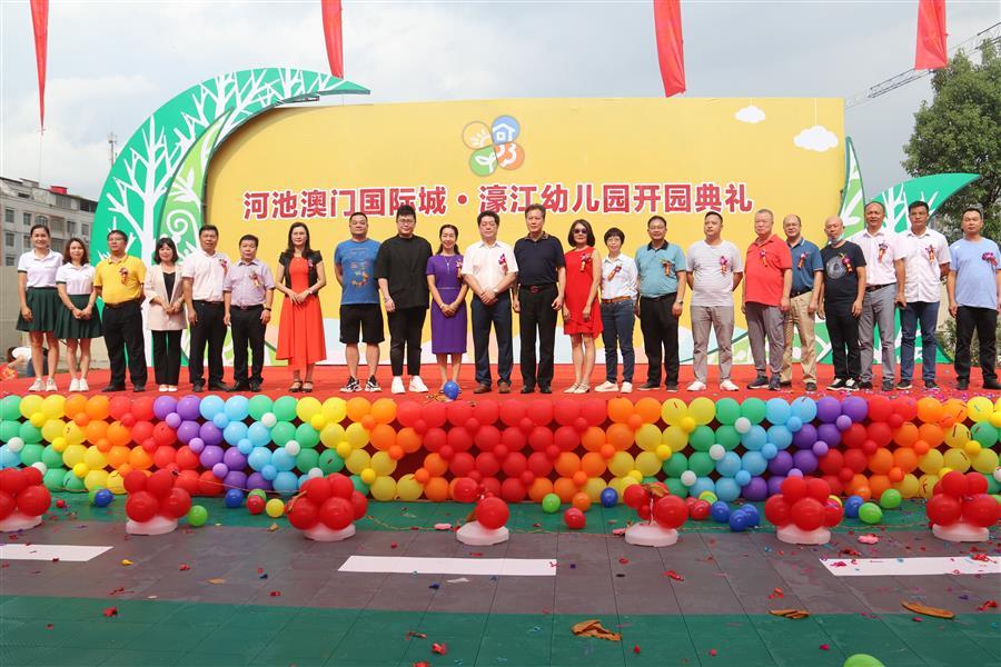 河池市政府和市直相关职能部门,金城江区政府和区直相关职能部门,建设单位和桂金分公司等相关单位领导及濠江幼儿园全体教职员工等参加此次开园典礼。