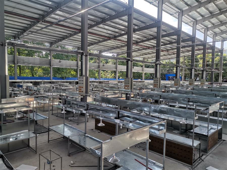 9月21日,在第十分公司承建的柳州市桂中商城改造过渡市场项目施工现场,100多名施工人员坚守岗位,赶工期,抢进度。目前,该项目道路已全部硬化,钢结构安装工程完成90%,门窗安装完成60%,水电安装完成90%。