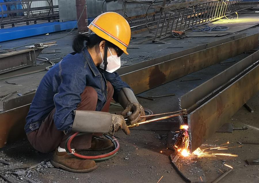 在压力容器制造厂金属结构车间里,工人在挥洒汗水,奋战在岗位上,他们立足岗位,与任务节点赛跑,确保按时完成钢蓖子制作工作。
