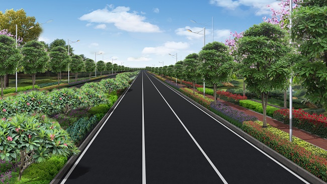 该项目位于田东县滨江新区右江左岸,设计等级为城市次干路,设计速度40km/h,标准路幅宽40米,主干道路长约2084米,A、B、C、D四条匝道长约898米,主要建设道路工程、交通工程、岩土工程、排水工程、照明工程、景观及绿化工程等,计划总工期为365天。