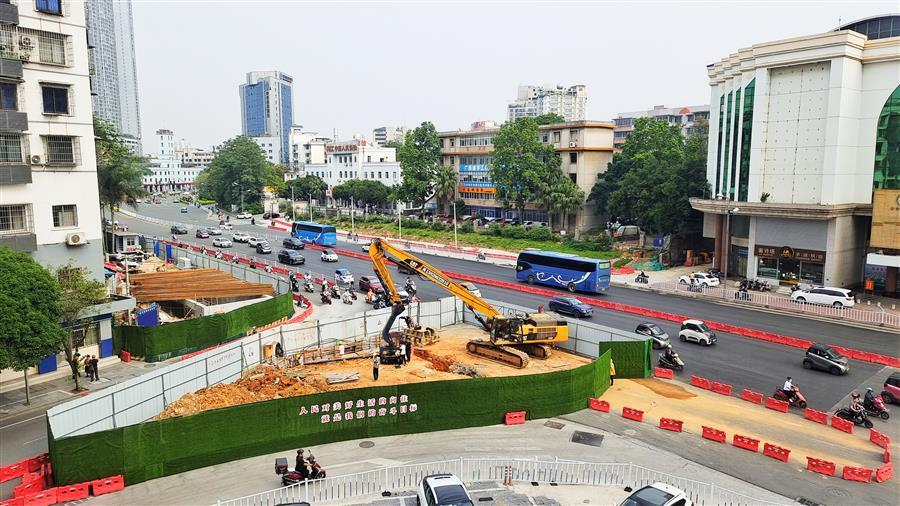 项目于从2021年1月4日开工建设,分5个阶段施工。2月1日完成了首期的施工计划——将友谊路从双向6车道拓宽为双向8车道,解决文昌大桥下桥道路变窄的瓶颈问题,并为下穿主体施工做好了前期准备工作。