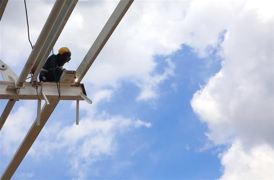 炎炎夏日,挡不住项目推进的步伐。7月20日,由冶建公司承建的柳州铁路港核心区(西鹅铁路物流中心)仓储配一体库项目施工现场,皮肤黝黑的覃五伟在工友的配合下,迅速而准确地把一块块外立面板材安装到位,与此同时在该项目现场、不同作业岗位上的,还有几十名工人,正在挥汗如雨地工作,大家克服困难、齐心协力施工,就是为了尽快完成项目的收尾工作,早日交付。