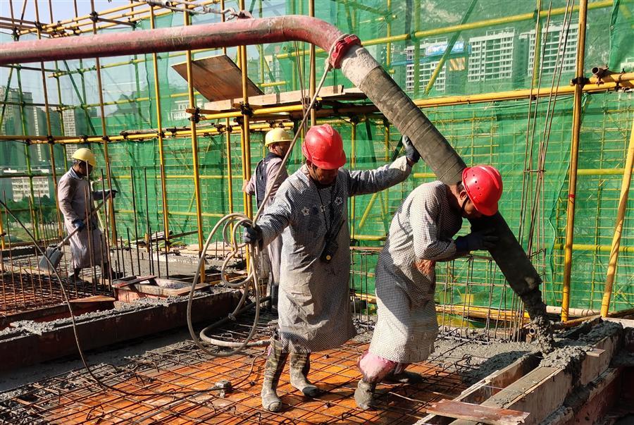 河池·澳门国际城四期工程位于河池市金城江区百旺路10号,总建筑面积13.76万平方米,由5个单体建筑、地库,以及配套设施工程等部分构成。目前,3个单体建筑均已施工至结构层8层梁板砼浇筑,项目累计完成总工程量的12.8%。