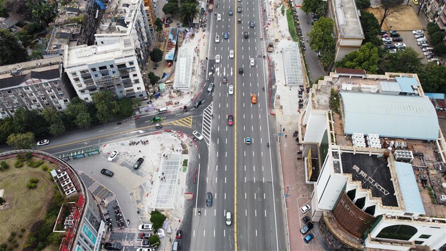 该工程于2022年1月4日开工建设,由于施工现场处于市中心地段,周边车流、人流量大,施工场地狭窄,地下管线复杂,施工难度极大。为实现2023年春节开放通行目标,项目部积极协调各方力量,积极配合相关单位进行迁改、支撑保护,科学合理安排工序,在保证安全生产和施工质量的前提下,发扬“5+2”“白加黑”连续作战精神,全力推进项目建设,截至目前项目仅剩一些收尾工作即可开通。