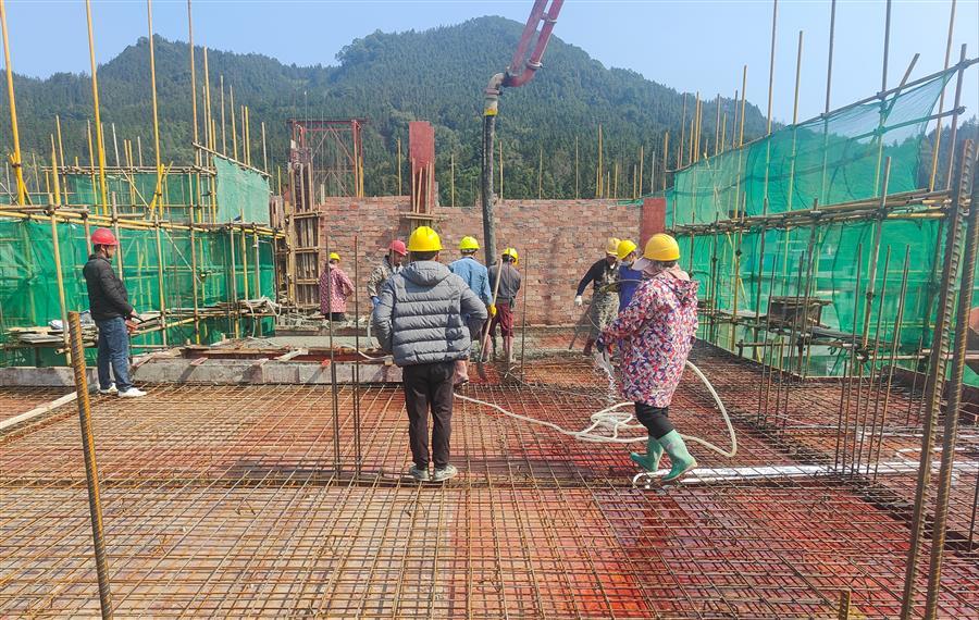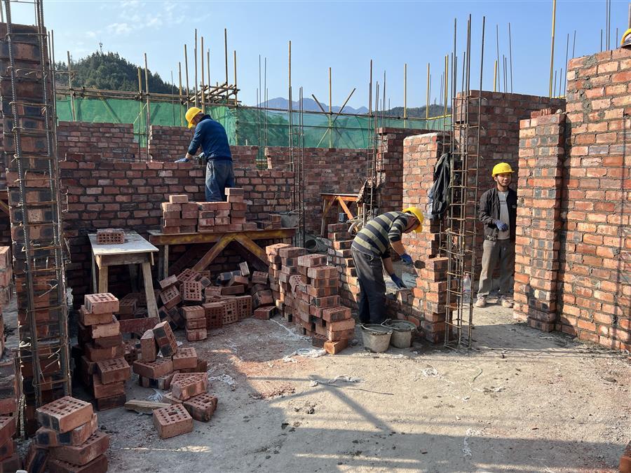 融水苗族自治县安陲乡江门村乡村振兴产业园项目总建筑面积约8420平方米。项目建设内容包括:园区标准厂房建设及道路工程、场地平整、雨水、污水、给水、室外电气及室外绿化工程;厂房结构形式为框架结构。目前,项目1#厂房二层砖墙砌砖40%;4#、5#厂房外墙砖砌筑90%;7#厂房主体结构屋面钢筋绑扎完成。