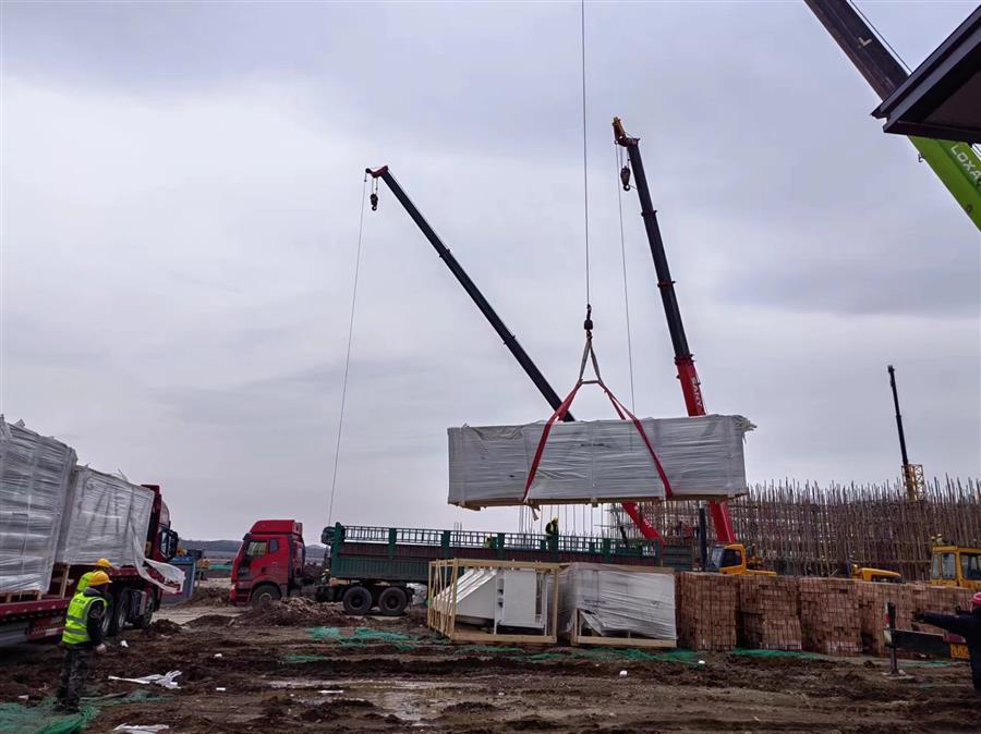 近日,冶建公司第四分公司承建的黑龙江省宝清经济开发区现代物流园区配套基础设施建设项目的12台冷风机设备顺利进场,项目部紧锣密鼓按计划有序推进各项工作,高效推进项目建设。