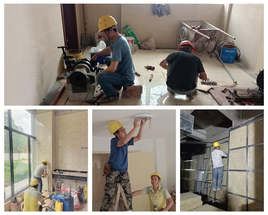 近日,冶建公司桂南分公司承建的柳州军用供应站军供大厦项目现场,施工人员正在忙着进行风机安装,风机房吸音墙、吸音吊顶安装、电缆安装、消防电安装与调试等工程施工,项目总体施工进入收尾阶段。