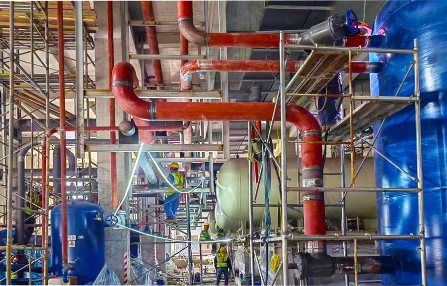 7月以来,项目部精心组织,细化项目施工任务,抓住施工“黄金期”加快推进项目建设。项目全体人员顶着高温酷暑,坚守岗位,高标准、严要求,全力保障工程质量和进度,推动项目建设顺利有序进行。目前,项目1#玉米加工车间屋面蒸发冷设备安装完成,管道安装完成90%;压缩机、桶泵机组设备完成安装,管道安装完成50%、速冻机组设备安装完成40%;3#配送中心机房屋面蒸发冷安装完成及管道安装完成80%;4#冷链配送中心室内设备及管道安装完成90%。