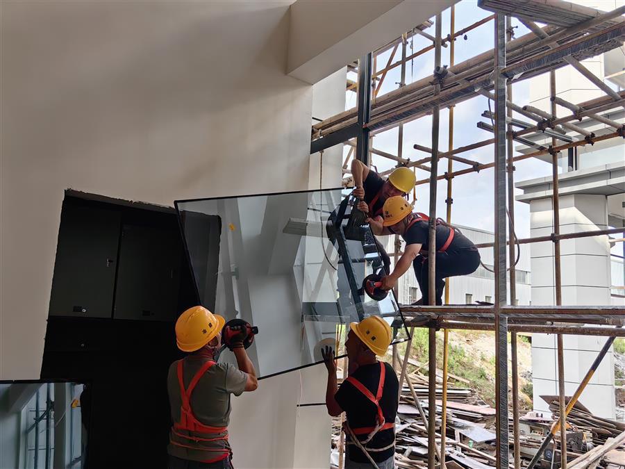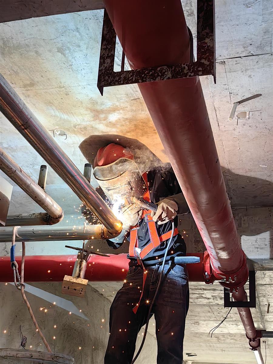 在区外一项目施工现场,全体建设者干劲十足、大干快上,全力以赴加快推进项目建设。项目部以“保安全、提质量、抢进度”为核心,聚焦关键工序和重点环节,作业施工班组围绕工程节点展开激烈的生产比拼。消防管道安装的工人焊接技术高超,玻璃安装的工人协作默契,楼面基层打磨的工人机械操作娴熟,技术人员穿梭于现场把控细节,安全员紧盯安全隐患……现场每一位作业人员分工明确、协同作战、合力推进。