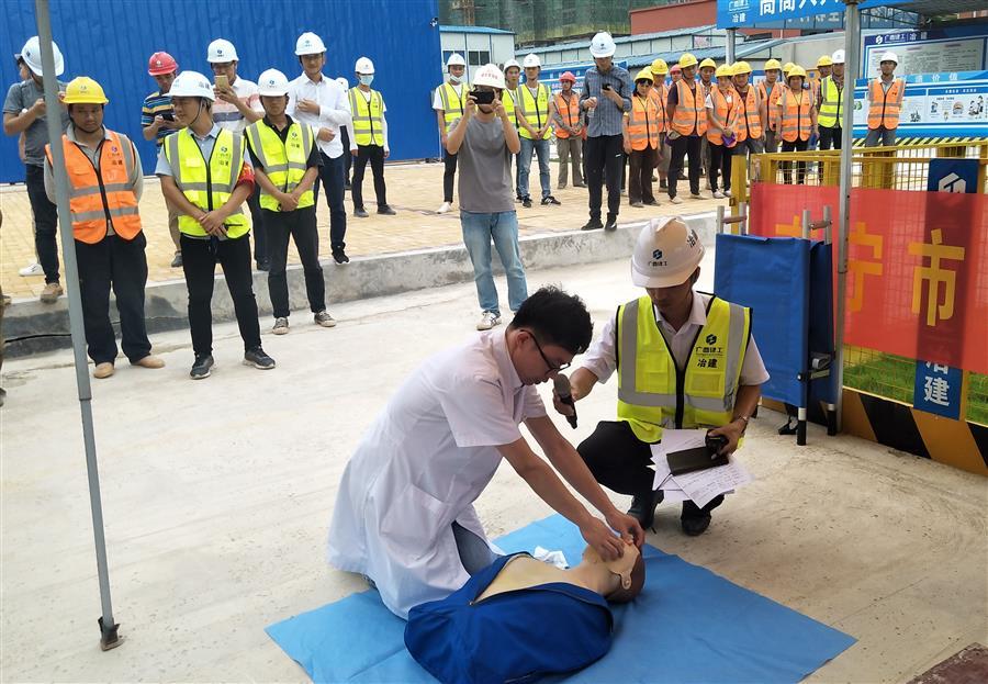 为了切实加强项目部安全管理工作,提升应急救援水平,提高员工安全防患意识和自救互救能力,结合“安全生产月”活动要求,6月14日下午,由桂海分公司承建的南宁市江南区人民医院二期工程项目部开展了综合应急演练活动。