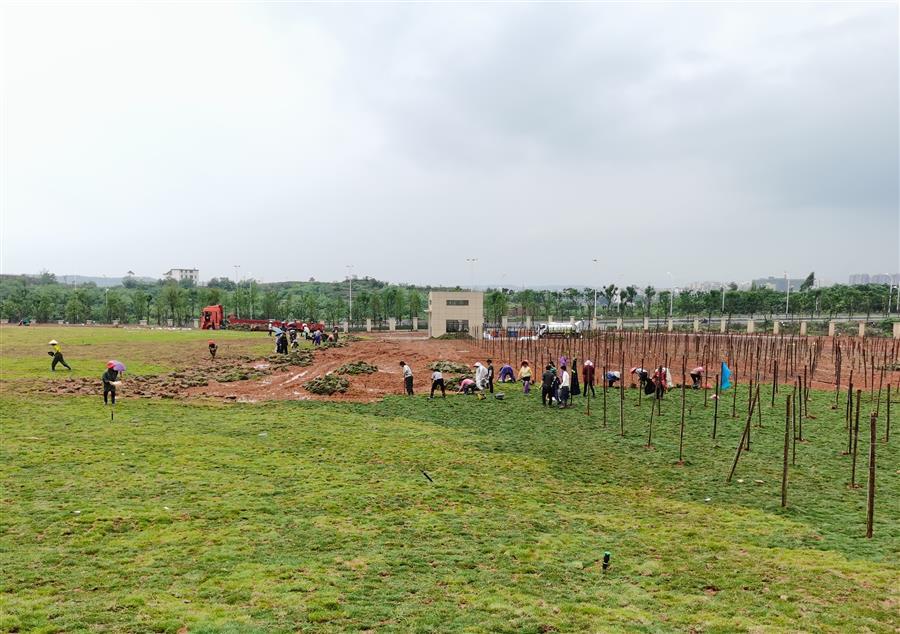 抢晴天、战雨天,无问天气、只争工期。团结拼搏、决战决胜的毅力和斗志,在这个项目上得到充分体现,市政道路和给排水、强弱电、围墙、园林景观、绿化、亮化等分部分项工程在1606亩的场地上全面铺开。