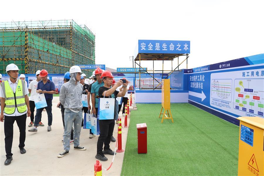 随后,与会人员进入项目实体进行安全文明标准化生产现场观摩,认真听取讲解员对安全文件宣贯长廊、安全管理标准化展示区、安全防护工具化、定型化展示区、质量样板展示区等方面的介绍,并详细了解项目建设的管理亮点和特色做法等。