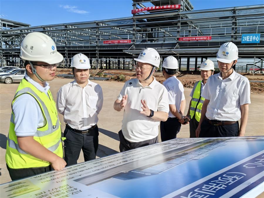9月2日、3日,绿地大基建集团调研组到广西建工集团有限责任公司冶建公司第四分公司承建的内蒙古呼和浩特市武川县10万吨冷链物流新建项目调研,并开展重大工程项目综合检查。广西建工集团有限责任公司副总经理陈礼松,冶建公司总经理、党委副书记蒙胜益,副总经理何勇参加。
