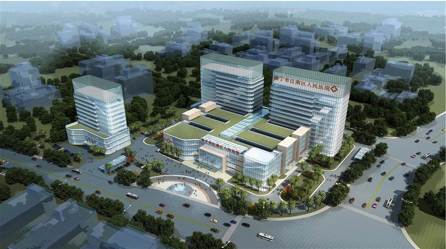 江南区人民医院位于南宁市江南区沙井片区同乐路与智兴路交汇处西北侧,占地面积65亩,总建筑面积约10.93万平方米,拟建成设置795张床位的二级公立医院。江南区人民医院分二期建设,一期工程门诊综合楼(含江南区急救中心),已于2018年11月28日正式投入运营。该项目于2017年10月30日开工建设,总投资约5.7亿元,建筑面积约8.73万平方米,包括医技综合楼以及住院大楼等。目前,江南区人民医院二期项目工程第一阶段施工任务顺利完成,为下一阶段施工打下了良好基础,更为工程的按时竣工提供了良好保障。