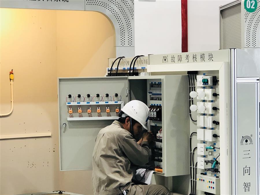 公司选派两名员工参加本次大赛的电工项目及电气安装项目比赛,比赛通过理论知识考试和现场实操考试形式进行,现场实操考试以机电设备事故处理的形式开展。比赛要求参赛选手在规定时间内完成相同的任务,速度快、操作准、质量高者获胜。
