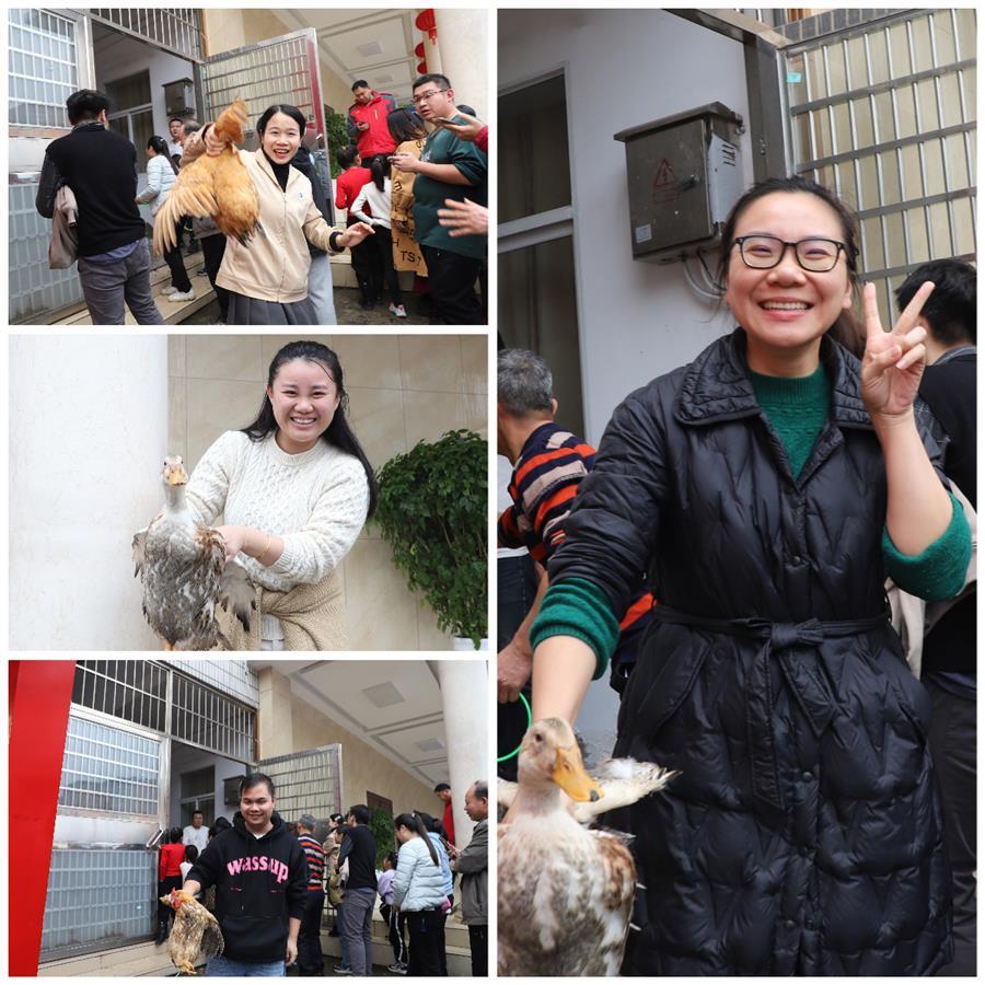 活动现场欢声笑语、其乐融融、热闹非凡。在集体项目欢乐踩气球中,参与比赛的职工团结协作、默契配合,场面激烈,观众的掌声、笑声、喝彩声此起彼伏。游园活动还设置了套活鸡活鸭、百发百中、如意套圈等个人项目,大家有序排队积极参与每个小游戏,玩得不亦乐乎,为即将到来的龙年新春增添了满满的喜气。