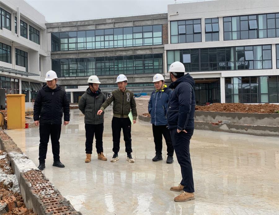 何登培(左一)到项目现场开展工作