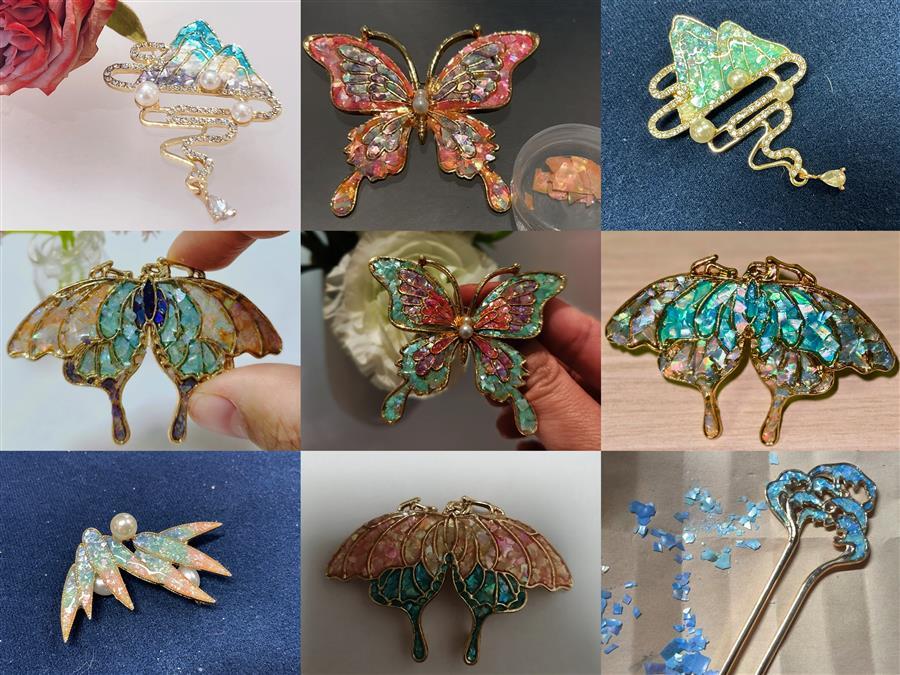 制作螺钿胸针成品